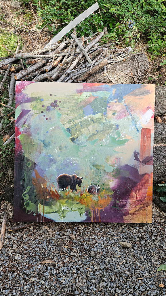 Wood canvas pieces created by Sarah Lewke, an artist and teacher based in the Okanagan. Her work is an exploration of beauty, identity and our relationship with the landscape. She takes inspiration from numerous sources, including places she has travelled, her Christian faith, and the Okanagan Valley. She is interested in color and pattern, and creating interesting objects of beauty.