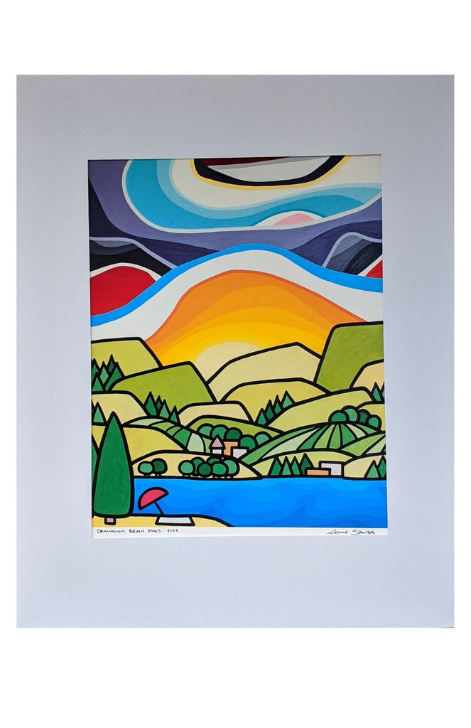 'Okanagan Beach Days' is an acrylic paint fine art reproduction print of an original painting by Leanne Spanza. Printed on premium archival fine art Rag acid free paper in vivid colour and exceptional detail.
