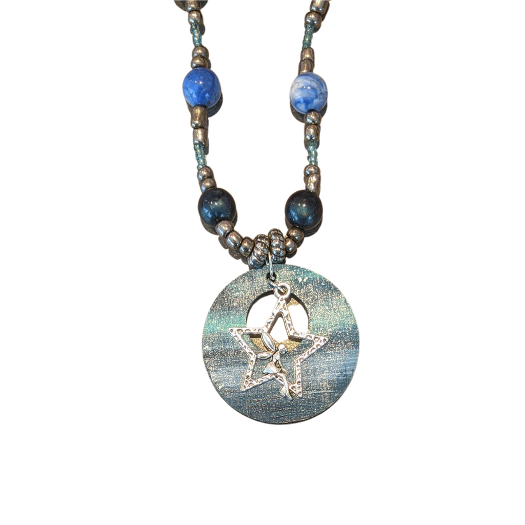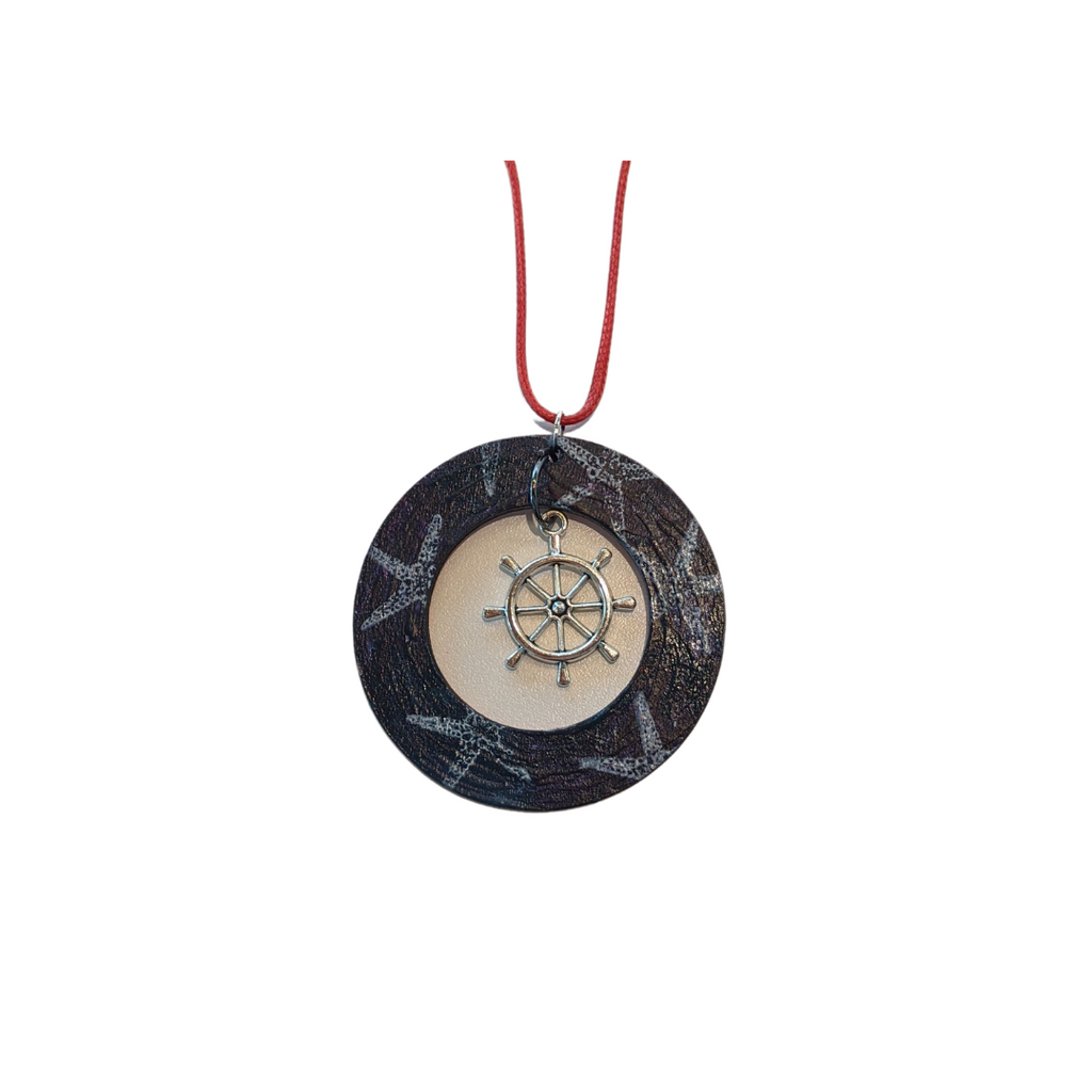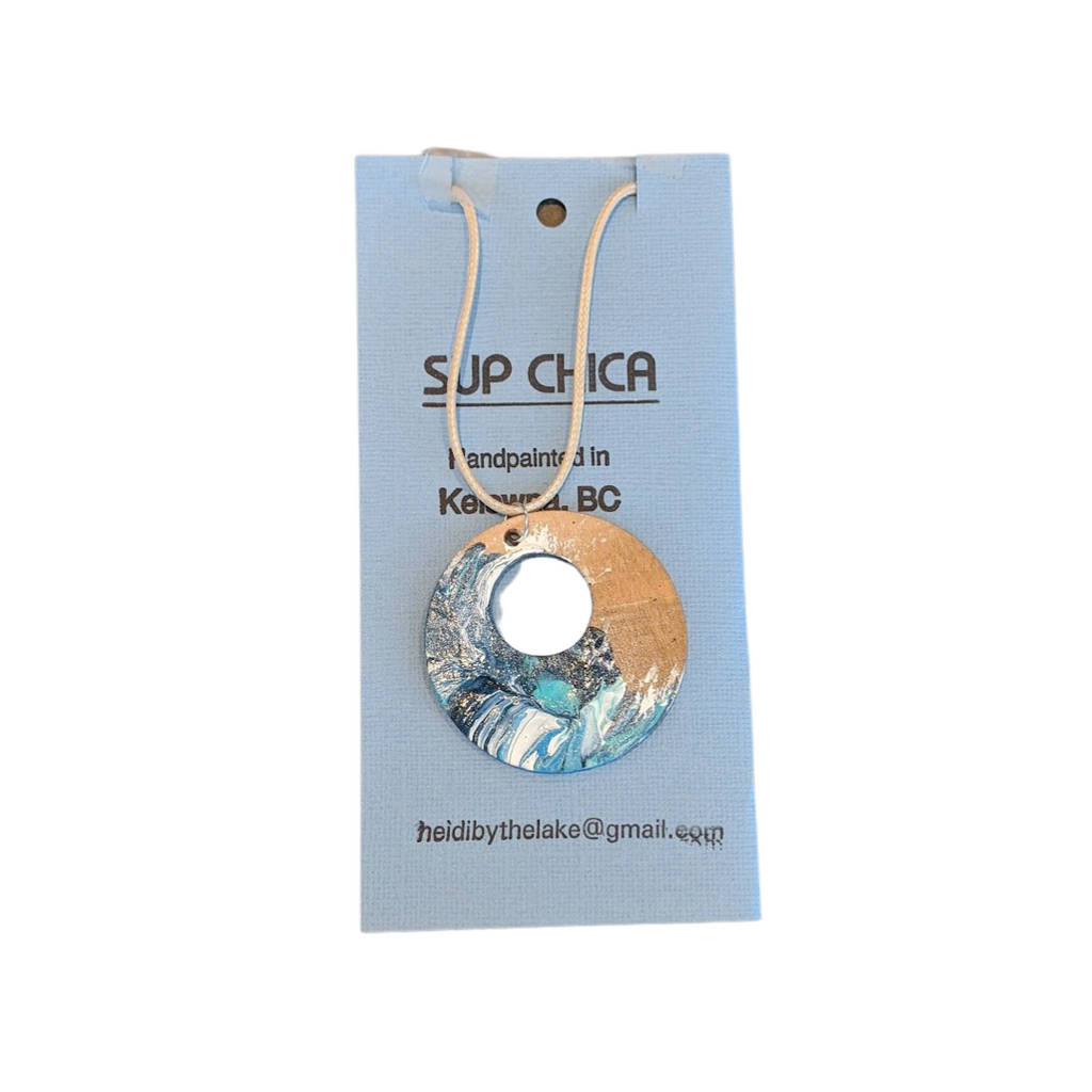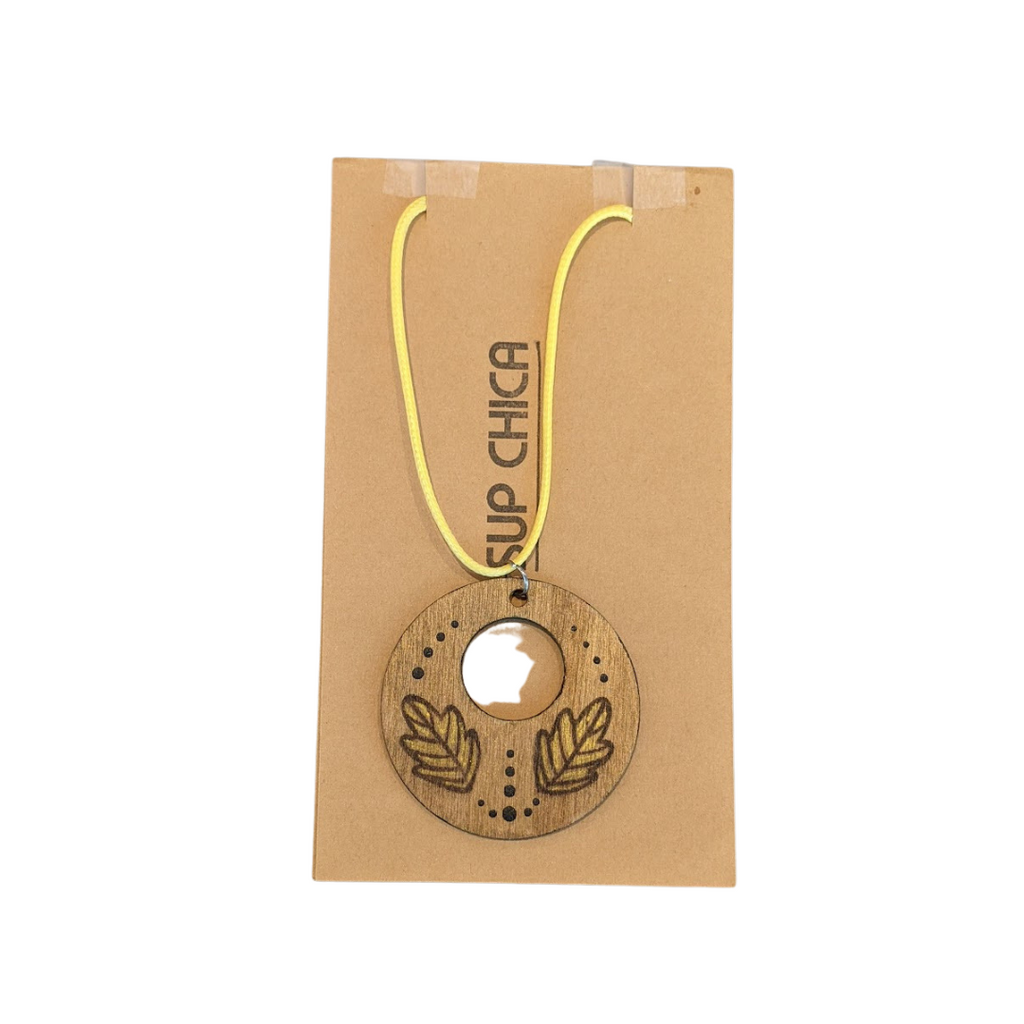 Locally made handpainted wooden necklace charms. All beaded options are hand-beaded using beads recycled from old jewelry.